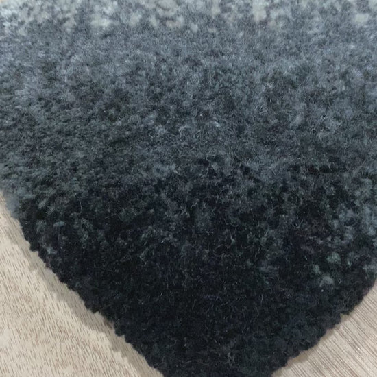 Hand tufted, rich colored gradient heart that begs to be touched. Shades of black and gray.